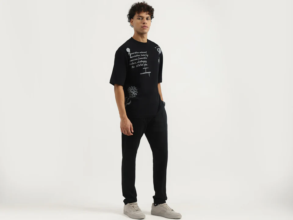 Men Oversized Round Neck Typography T-Shirt