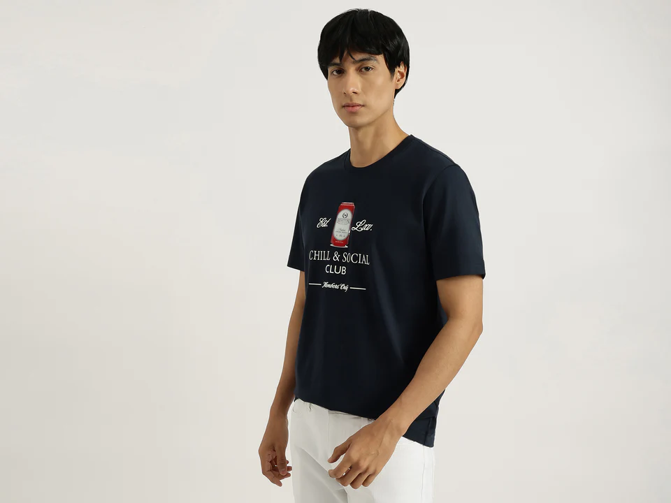 Men Relaxed Fit Round Neck Typography Chill & Social Club T-Shirt